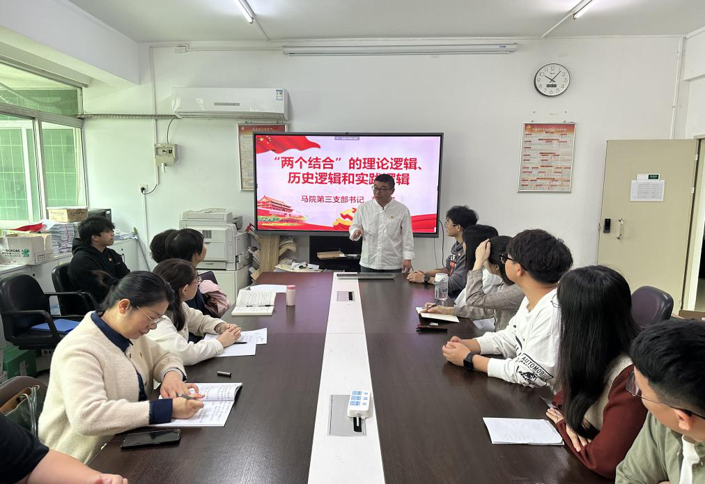 活动伊始,伟德betvlctor体育官网教工第三党支部书记韩大猛以“‘两个结合’的理论逻辑、历史逻辑和实践逻辑”为题,为在场的党员们讲授了一堂生动的党课。他勉励在场学生党员们,坚持将马克思主义理论与学习生活实际相结合,不断提高自己的思想觉悟和实践能力。