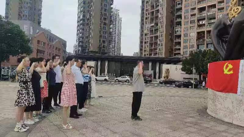 在志愿者公园,支部全体党员回顾入党初心、牢记使命责任,通过共同重温入党誓词,纪念庆祝中国共产党成立102周年。