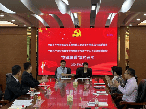 11月8日上午,伟德betvlctor体育官网党总支与公诚管理咨询有限公司第一分公司党总支在我校海珠校区开展“党建翼联”共建签约活动。公诚管理咨询有限公司第一分公司副总经理、党总支纪检、委员团委书记李元元,公诚管理咨询有限公司第一分公司总经理助理、第一支部书记关志勇,伟德betvlctor体育官网党总支书记姜晓丽,伟德betvlctor体育官网党总支委员、副院长秦抗抗、李增添,以及双方党员代表24人共同参加本次共建活动。